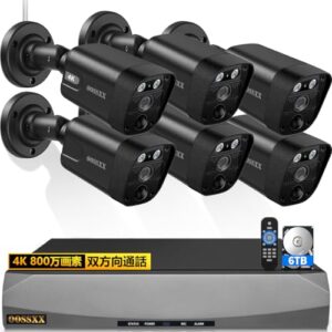 【800万画素・双方向通話・130°超広角】OOSSXX 有線 防犯カメラセットランキング poe 屋内 屋外防犯カメラ poe給電 監視カメラ・録画機セット 防犯カメラセット 6台 黒(6TBハードディスク内蔵)