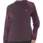 プーマのウィメンズ用ブルゾン「RUN FAVORITE AOP」は、防風かつ吸収速乾性に優れています。24年秋冬カラーのミッドナイトプラム/AOP(44)で、アクティブな女性に最適なデザインです。