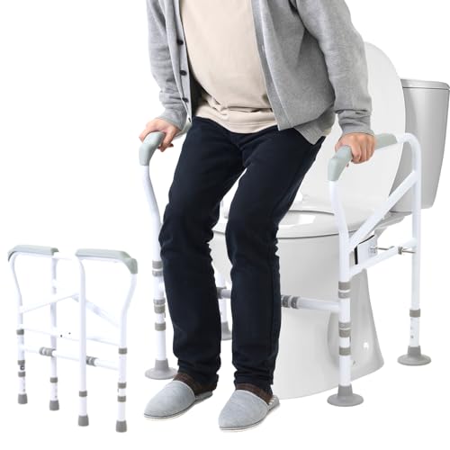 iimono117のトイレ手すりは、高さと幅が調整可能で、介護用として設計されています。工事不要で置くだけで使用でき、転倒防止や立ち上がり補助に役立ちます。高齢者や身体障害者、妊婦にも適しています。