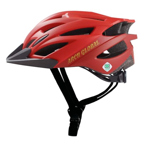 Arch Global 自転車ヘルメット FIDESはSGマーク取得済みで、大人・子供兼用の軽量モデル。耐衝撃性の超硬質PC素材を採用し、サイズ調整可能。頭囲55~61.5cmに対応、マットレッドカラーでサイクリングに最適。