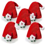 クリスマス帽子サンタ5個セット。かわいい装飾図案で、コスプレや仮装に最適。男女兼用で、サイズは27CM。クリスマスパーティやイベントにピッタリ!