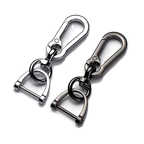 KeepfineのキーホルダーはカラビナフックとDリングを搭載。脱落や紛失を防ぎ、取付けも簡単。車や自転車、バイク用に最適な高級おしゃれキーリング。シルバーとガン色の2点セットで、ギフトにもぴったり。