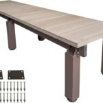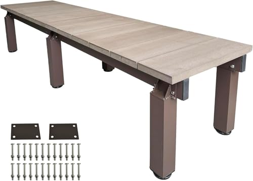アイガーデンの縁台DXダークブラウンは、幅180cm、奥行45cm、高さ40~44cmの調節可能な人工木製デッキです。アルミニウム合金製で耐久性があり、踏み台やベンチ、花台としても使用可能です。