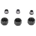 6Pcsトリマー用コレットチャックルーターアダプターセット。炭素鋼製で6mm、6.35mm、8mm対応。ナット付き、DIY作業や電動工具に最適なトリマーアクセサリ。