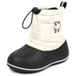 モズのダウンブーツは、ビーン型でインナーボアが暖かさを提供。履き口のゴムヒモでフィット感を調整でき、寒い季節にぴったりなキッズサイズ17.0cm。アイボリーの色合いが可愛らしさを引き立てます。