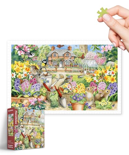 ピースリラックスの1000ピースプラ製ジグソーパズル「Claire Comerford_春の庭」は、大人向けの難易度高めのデザイン。サイズは38X59cmで、カチっとハマるピースが特徴。破片なしで安心して楽しめます。[H3442]