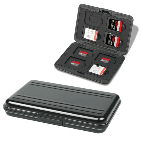 SDカードケースは、16枚のメモリーカードを収納可能で、SDカード8枚とmicroSDカード8枚対応。両面収納ができ、防水・防塵・防震・耐衝撃設計で、安心して持ち運べます。