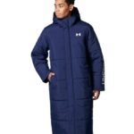UA LOGO LONG COAT Midnight Navyは、快適さとスタイルを兼ね備えたロングコートです。防風・防寒性能があり、デイリーユースに最適。サイズはSMで、アクティブなライフスタイルにぴったりです。