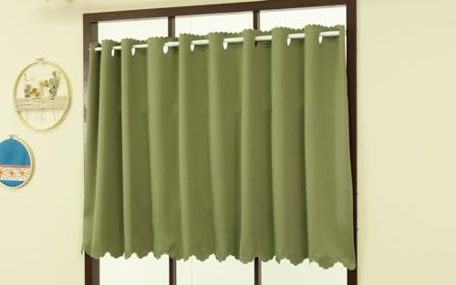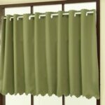 かーてん屋さんアウトレットの防炎遮光1級カフェカーテン「ピティ」は、オリーブ色で幅145cm、丈70cmのサイズです。1枚入りで、落ち着いた色合いが魅力的。防炎機能と遮光性を兼ね備えています。