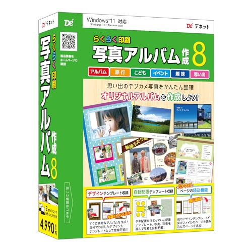 らくらく印刷写真アルバム作成8は、簡単に写真を整理・印刷できるアルバム作成ソフトです。多彩なテンプレートやデザイン機能があり、おしゃれなアルバムを手軽に作成できます。初心者でも安心の操作性が魅力です。