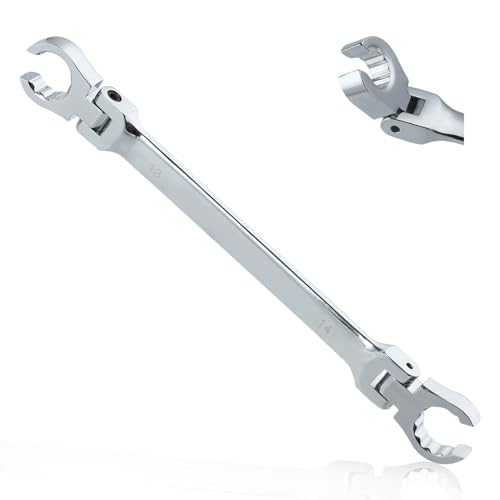 GOLD DEER ダブルフレアナットレンチ フレアナット メガネレンチ フレックス フレアナットレンチ フレアナットレンチ ブレーキパイプ用メガネレンチ 13×14mm 首振りブレーキパイプめがねレンチ スパナ 整備工具13mm 作業 常備 車 バイク 各種メンテナンス対応 家具組み立て ブレーキ配管 オイル配管 フレキシブルの高価買取