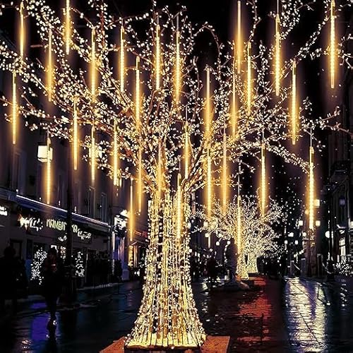 Yirdapallのソーラーイルミネーションライトは、屋外用の30cm×10チューブ、360LEDのクリスマスライトです。防水仕様で、暖かい白色の流星シャワーを演出し、ガーデンを美しく彩ります。