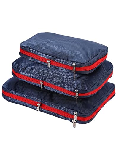 トラベルポーチは、衣類を圧縮できる便利な旅行用袋です。ネイビー色でスペースを節約しつつ、衣類の仕分けが可能。中サイズで、整理整頓をサポートします。