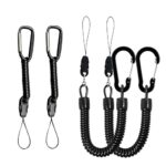 カールコードストラップはハンディターミナルやスマートフォンに最適で、落下や盗難・紛失を防止します。伸びるカラビナ付き、キーホルダーとしても使用可能な4本セットです。