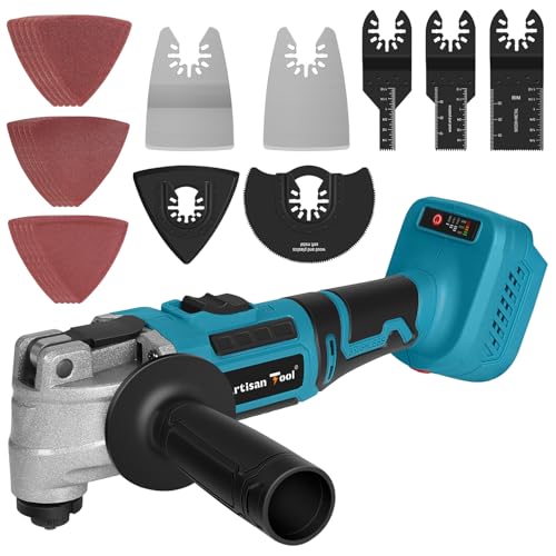 アルチザンツール マルチツール ATMT01Bは、マキタ18Vバッテリー対応のスターロックタイプで、木材や石膏ボードの切断、Pタイル剥離、さび落とし、研磨、FRP・タイル目地切断に最適。バッテリーは別売りです。