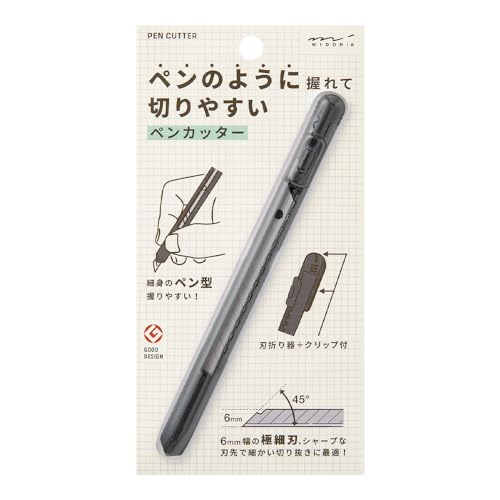 ミドリ カッター ペンカッター 黒A 35556006は、精密なカットが可能な軽量ペンタイプのカッターです。デザインがシンプルで持ちやすく、文房具として使いやすいアイテムです。