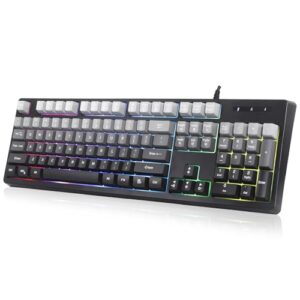HUO JI ゲーミングキーボード メカニカルキ式ーボード USB有線 104キー LEDバックライト フローティングキー 防水 静音 RGB 英語配列 人間工学設計 Xbox・PSシリーズ・PC対応 (ホワイト1)