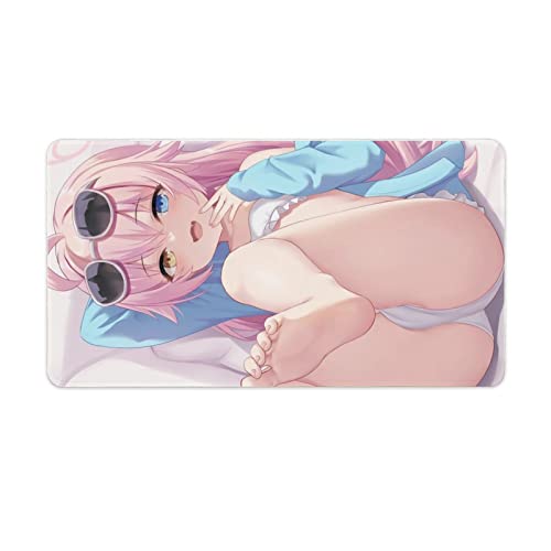 大型のゲーミングマウスパッド、ブルーアーカイブ【小鳥遊ホシノ】デザイン。サイズ40x75cm、耐洗い表面と滑り止めゴム底で耐久性抜群。オフィスやゲームに最適な快適な使用感。