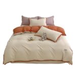 ZENSUGI ふんわり ピーチスキン加工 布団カバー ボックスシーツ マットレスカバー フィットカバー 洋式 バイカラー 配色 大人 子供 熊 可愛い ピローケース 枕カバー 掛けカバー 寝具カバーセット 3点セット シングル セミダブル 高価買取中