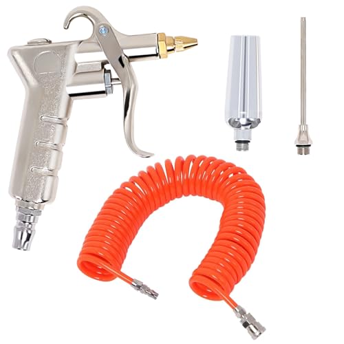 Ligefoy エアダスターはエアブローガンとエアーホースが組み合わさった空気圧ツールです。バネ式で長さ9M、内径6.5mm、外径10mm。130mmロングノズルと増風ノズル3種類付きのセットです。