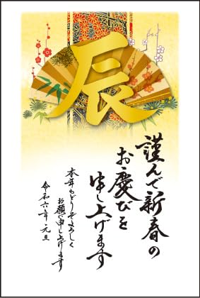 令和6年(2024年)用の辰年年賀状です。10枚入りのパックで、豪華な箔押しデザインが特徴。新年のご挨拶に最適な一品で、受け取る方に喜ばれること間違いなし!