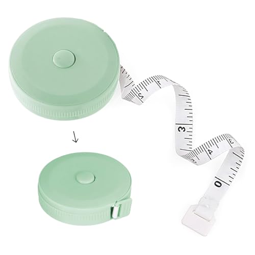 ShuaWdkの巻き尺は、2m(200cm)で裁縫や洋裁に適した軽量で両面目盛のテープメジャーです。バストやウエストの測定が簡単に行え、巻取りボタン付きで使いやすい緑色のデザインです。