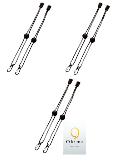 Okima グローブリーシュは、日本製のスノボやスキー用の手袋リーシュです。手袋の落下や紛失防止に役立ち、ブラックホワイトのデザインで、27cmの長さのものが3組(6本)セットになっています。