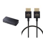 エレコムのHDMI音声分離機は、4K60Hz対応でPS4/PS5/Switchに適合。光デジタルとアナログ出力に対応。HDMIケーブルは1mの極細タイプで、4K2K(30Hz)のハイスピード伝送を実現。
