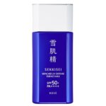 雪肌精の日焼け止めは、60gでSPF50+/PA++++の高性能を持ち、ウオータープルーフタイプ。顔や体に使用でき、ハトムギエキスが配合され、しっかりと紫外線から肌を守ります。スキンケア効果も期待できるエッセンスミルクです。