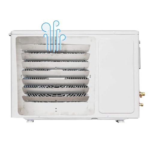 エアコン室外機用のステンレス製直吹き防止エアガイドです。吹き出し口バッフルの向きを変えることで、効率的な空気の流れを実現します。サイズは48cm x 48cmで、四角形のデザインが特徴です。