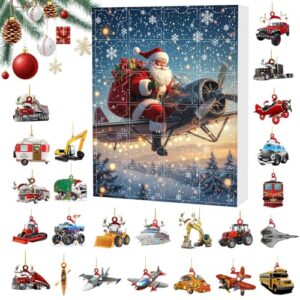 カウントダウンカレンダー | 24日間の12月カレンダーカウントダウン | サンタと乗り物モチーフのオーナメントペンダント | ツリーや玄関ドア用デコレーション