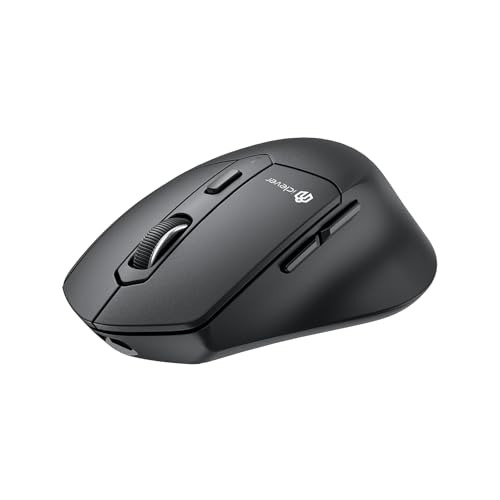 iCleverワイヤレスマウスはBluetooth5.0と2.4GHzのデュアルモードで、3台のデバイスに同時接続可能。静音設計、7ボタン、4段階DPI切替、Type-C充電対応、Windows、Mac、iOS、Androidに対応します。