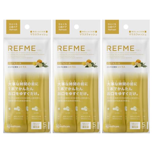 アイリスオーヤマのマウスウォッシュ【3個セット】です。個包装で持ち運びに便利なスティックタイプ。5本入り、シトラスの香り。ノンアルコールで口臭ケアに最適。お出かけや旅行におすすめ。