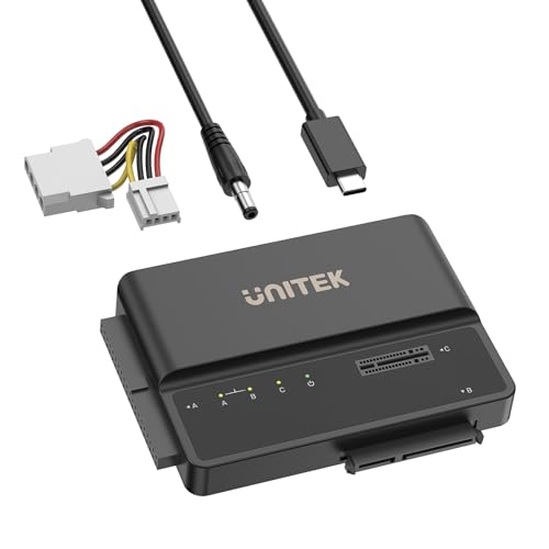 Unitek USB3.2 Gen2 M.2 NVMe/SATA/IDE 3in1アダプタは、10Gbpsの高速転送を実現。2230-2280および2.5/3.5インチのデバイスに対応し、ツール不要で簡単接続。大容量ストレージに最適。12V電源付き。