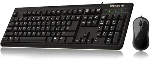 ギガバイトGK-KM3100は、ブラックカラーの有線10キーキーボードとマウスのコンボセット。耐久性に優れ、快適なタイピングや操作を実現。ゲームやオフィス作業に最適です。