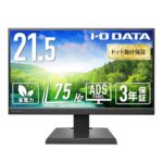 アイ・オー・データのモニターEX-A221DBは21.5インチ、ADSパネル、非光沢仕様。HDMI/アナログRGB接続、スピーカー内蔵。省電力設計、VESA対応、無輝点保証付き。土日サポートあり。