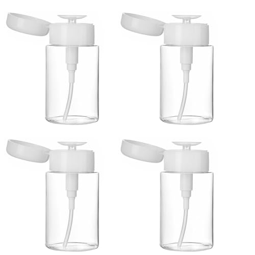 100mlの空のプラスチッククリアポンプディスペンサーボトル。ネイルポリッシュリムーバーやメイクアップリムーバーに最適なプッシュダウンタイプ。4個セット。