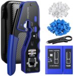 Proster RJ45圧着工具は、CAT6A、CAT6、CAT5Eに対応したLANテスターです。貫通型のカシメ工具で、50PcsのRJ45コネクタと保護カバーが付属。収納バッグもあり、便利です。