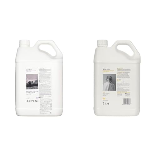 ecostoreのランドリーリキッド(ゼラニウム&オレンジ)5Lは、天然成分使用の洗濯用液体洗剤です。ファブリックソフナー(シトラス)5Lは、柔軟仕上げ剤で、衣類をふんわり香り豊かに仕上げます。