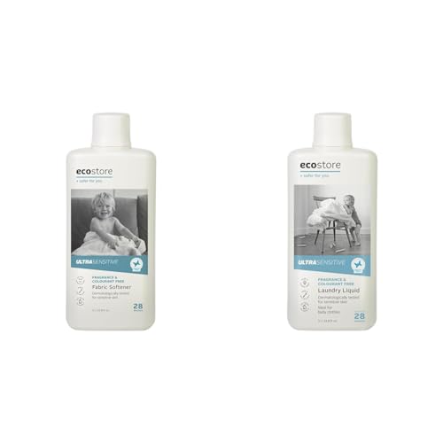 ecostoreのファブリックソフナー(無香料)1Lは柔軟効果があり、衣類をふわふわに仕上げます。ランドリーリキッド(無香料)1Lは自然由来の成分で、優れた洗浄力を持ち、敏感肌にも適しています。