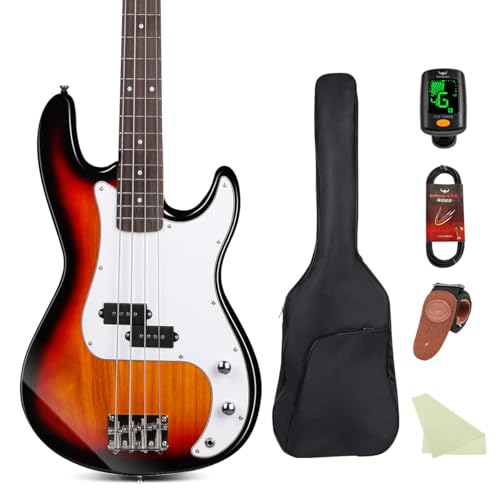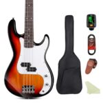 BullfighterエレキベースPB PJBは初心者向けの4弦モデルで、パフォーマンスに最適です。ソフトケース、シールド、チューナー、ストラップ、ピック、調整用レンチが付属します。