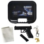 HITCALL グロック17超精密1/3サイズの排莢式合金キーホルダー。メタルスライドを採用したミニモデルガンで、専用ガンケースが付属。カラーはブラック。