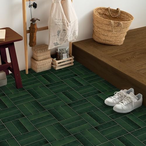壁紙屋本舗のクッションフロアは、シールタイプのタイルで、北欧レトロなデザインが特徴。サイズは176cm×88cmで、緑色のグリーン系。置くだけで簡単におしゃれな空間が作れます。
