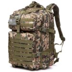 Thuramの50L耐久ナイロン製防水バックパック。フィッシング、ハンティングに最適。ミリタリータクティカルデザインで、キャンプやハイキングに対応。迷彩グリーンタイプ。