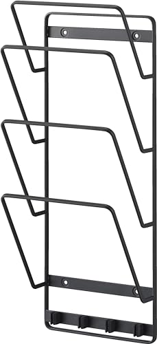 山崎実業の石こうボード対応ウォールタブレットホルダーです。4段式で、充電コードや本を整理整頓。サイズは約W16×D11×H42cm。ブラックカラー。付属品に石こうボードピンセットと木ネジが含まれています。