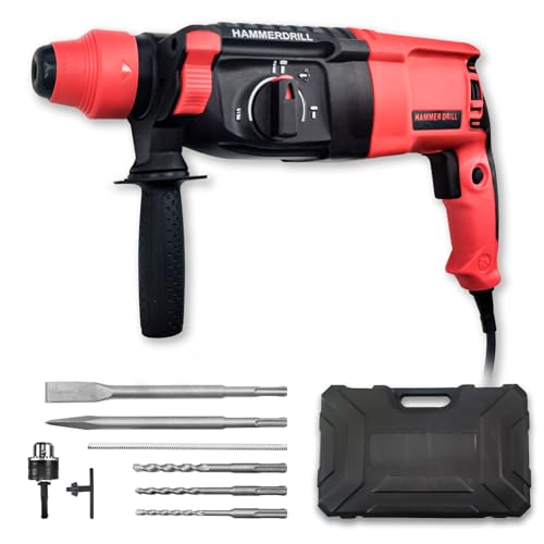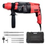 CXCESNS ハンマードリルは、1100Wの強力なコード式電動工具で、コンクリート、金属、木材に対応。3モードの振動ドリル機能を備え、φ26mmまでの穴開けが可能。豊富な付属品と収納バッグ付き、日本語取扱説明書も完備。