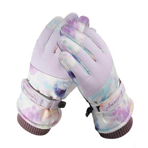 レディーススキーグローブは防寒・防水・防風仕様でタッチパネル対応。滑り止め付きで雪かきやスノーボードにも最適。厚手で撥水加工、紛失予防機能もあり。アウトドアや登山に最適なフリーサイズのパープルカラー。