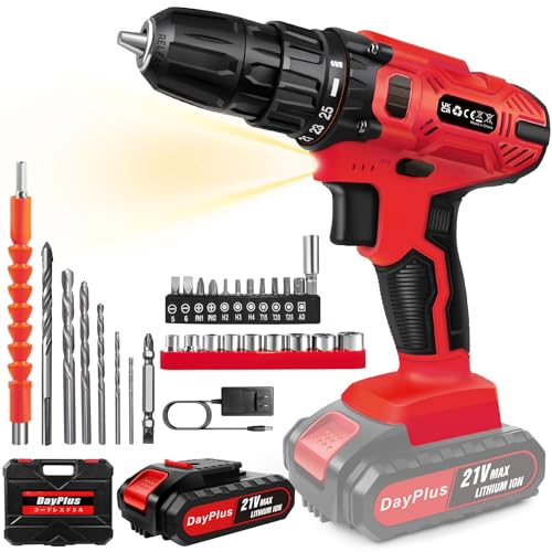 DayPlus 電動ドライバーは、21V、最大45N.mのトルク、2段変速(0-400RPM/0-1400RPM)、1500mAhバッテリーを搭載。安全ロック、コードレスで軽量。木工用としてDIYや家具の組み立てに最適。収納ボックス付き。