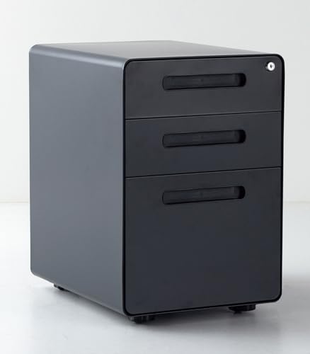関家具のデスクキャビネットは、引き出し式の袖机で、組立不要の完成品です。3段の可動式引き出しを持ち、大容量の収納が可能。A4サイズ対応のスチール製、色はブラック。