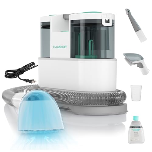HAUSHOFカーペットクリーナーは、400Wの強力吸引で、布製品をしっかりクリーニング。水漏れ防止機能付きで、乾湿両用。お湯対応、二つのヘッドとタンクを備え、ソファや車の掃除にも最適。